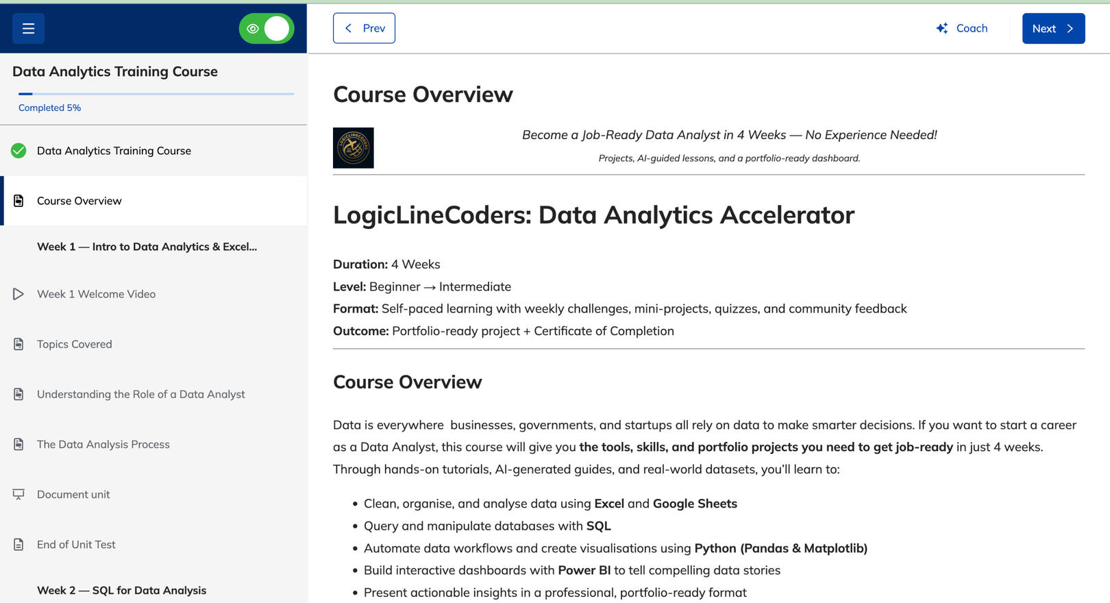 Week 3 – Learn to Think Like a Coder* Live Session 5: Programming Basics (JavaScript or Python)* Live Session 6: Real-World Logic: Problem Solving with Code